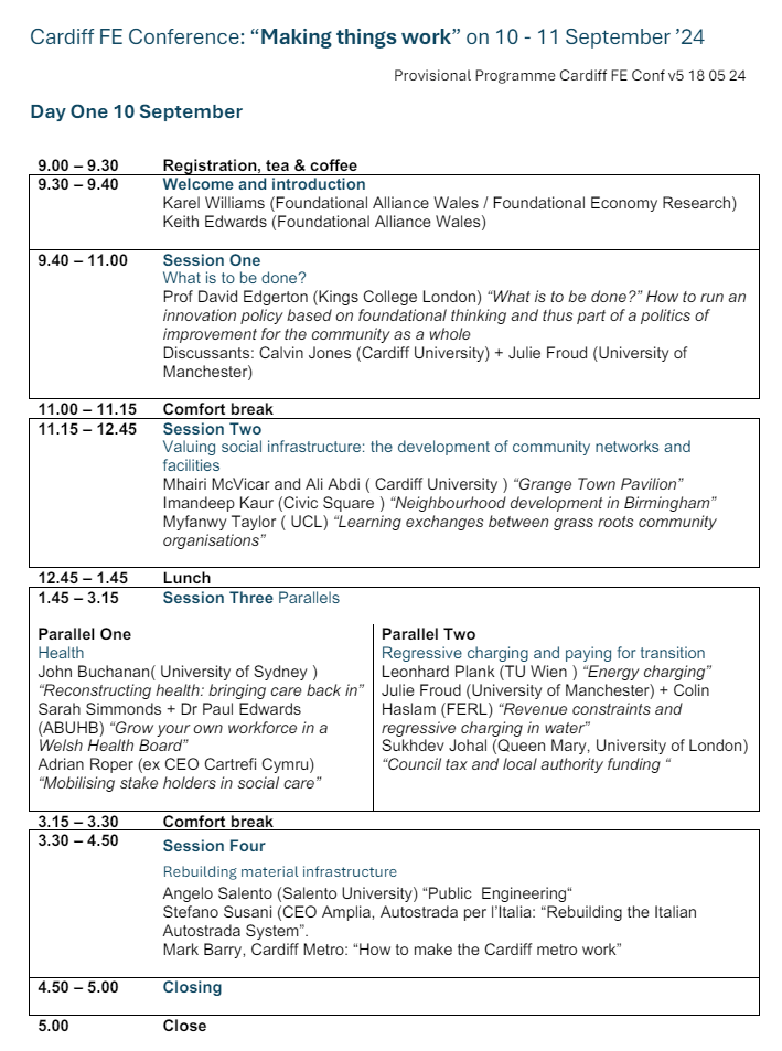 Cardiff Foundational Economy Conference: Making Things Work, 10-11 th September 2024